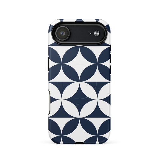MagSafe® tough case for iPhone®, modern circles, navy white