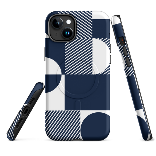 MagSafe® tough case for iPhone®, modern circles, navy white